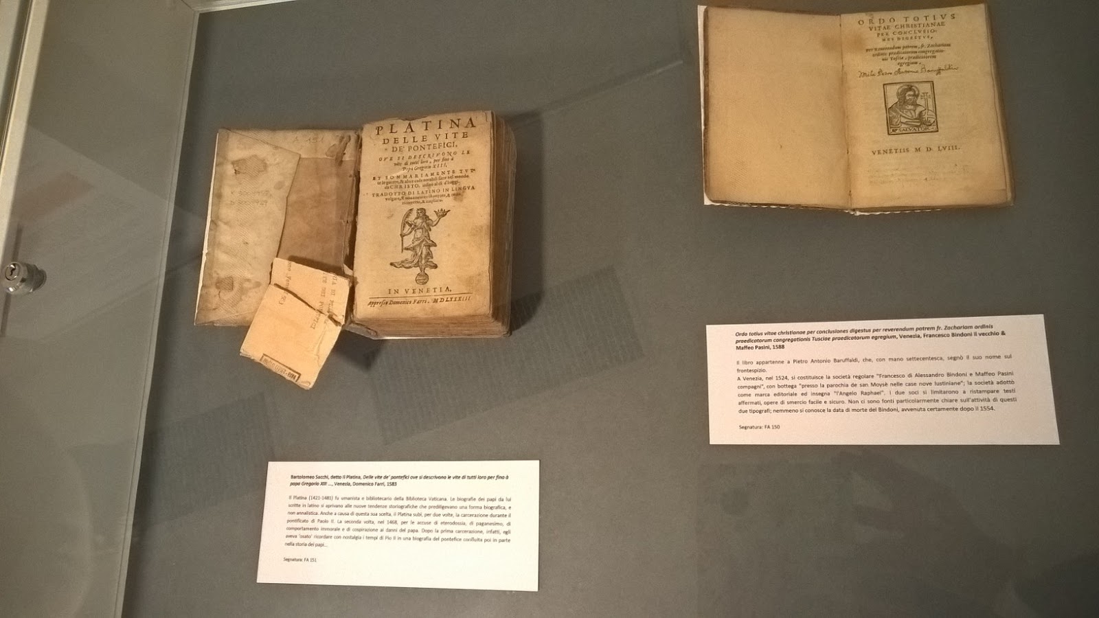 «Ai volumi verranno affiancati documenti che daranno prova delle prime presenze a Riva di cartiere, editori e tipografi - spiega Paolini - e che verranno utilizzati non solo per raccontare alcune vicende del territorio ma anche per mostrare materiali, tendenze e scritture, e soprattutto le vicende umane e le storie custodite nelle carte antiche. Nelle successive edizioni, man mano inaugurate da personalità sensibili verso il mondo della parola scritta, verranno poi svelati altri tesori della biblioteca, scritti o pubblicati nei secoli successivi: nella scelta sono stati privilegiati i prodotti tipici di un'epoca ma allo stesso tempo quelli più particolari, puntando a mostrare la varietà del patrimonio della Biblioteca oltre che della produzione libraria dei tempi passati».